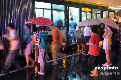 7月30日晚,北京奧運開幕式帶妝彩排演練,一場大雨給觀看彩排后的觀眾乘車帶來不便。中新社發 陳文 攝