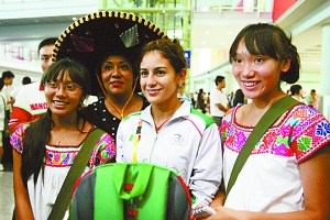 在北京首都機場接機大廳,戴著墨西哥傳統草帽頗顯怪異。昨日,3名墨西哥人就一直戴著能表明其身份的特殊帽子,等候本國運動員的到來。前來接機的攝影記者紛紛拿起相機,對著他們猛拍。在這一小撮人群中,還有一對雙胞胎女孩,她們是中墨混血兒,不過不會一句漢語。妹妹拿著一面墨西哥國旗,她們的父親是中國人,他告訴記者,“這幾個人從墨西哥來北京看奧運,今天自發前來接機。”