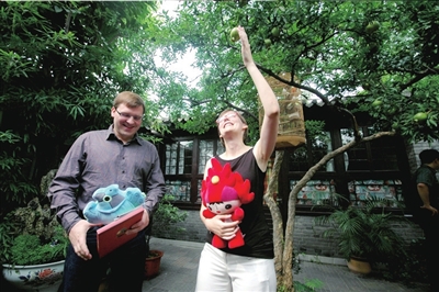 昨天,西城區旅游局為德國夫婦皮特和西蒙娜舉行了簡短的歡迎儀式,并向他們贈送奧運福娃和胡同游覽地圖。這對年輕的德國夫婦是本市首批入住奧運人家的外國游客。他們將在奧運人家居住五天,然后返回上海工作。