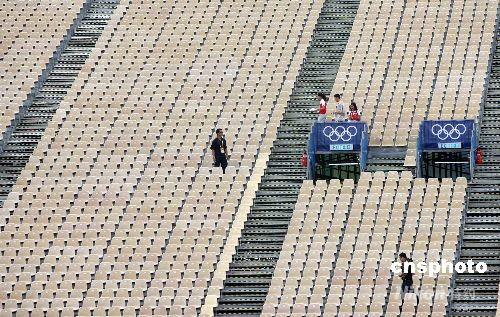 八月一日,香港奧運馬術公司在沙田賽場舉行記者會,讓記者在賽場內了解場館規則。首場奧運馬術賽將在八月九日上午六點三十分開賽。 中新社發 洪少葵 攝