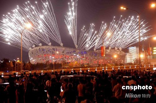 圖:奧運主體育場“鳥巢”再次燃放煙花