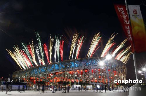 圖:“鳥巢”試放焰火