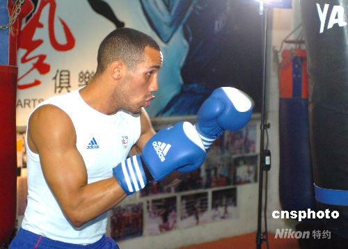 英國拳擊隊共有八名隊員參加北京奧運會,與古巴、俄羅斯等拳擊強國一比高下。圖為八月三日英國中量級選手詹姆斯·達格利在澳門備戰。 中新社發 畢永光 攝