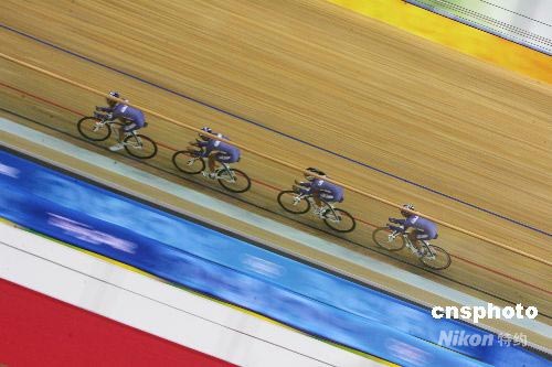 8月4日,哥倫比亞隊隊員在北京老山自行車館進行訓練,備戰(zhàn)即將揭幕的北京奧運會。 中新社發(fā) 武仲林 攝