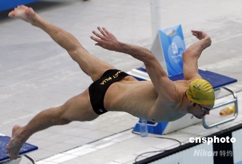8月5日,澳大利亞游泳隊在北京“水立方”適應(yīng)場地,為即將來臨的比賽做準(zhǔn)備。澳大利亞代表團一半獎牌都來自于游泳項目,本屆奧運會中澳大利亞將與美國隊在賽場上一爭高下。中新社發(fā) 杜洋 攝
