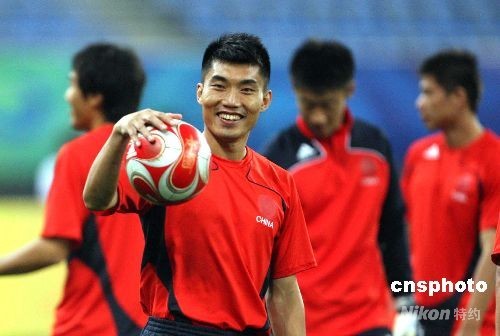 8月5日晚,中國男足在沈陽奧林匹克中心進行適應場地訓練,主力隊員鄭智在訓練中。中新社發 張宇 攝