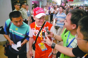 一直在首爾參加熱身賽的俄羅斯跳水隊8月4日有4名隊員到達(dá),昨日,剩余的6名隊員全部到達(dá)北京。等待薩烏丁的過程中,不斷地有志愿者對記者說:“等下能幫忙找薩烏丁要個簽名嗎?”而且,這次追星的人群不再是年輕人的天下,一些中年人也參與到簽名、合影的陣營之中。