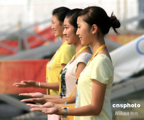 圖:奧帆賽頒獎(jiǎng)禮儀小姐冒酷暑排練(2)