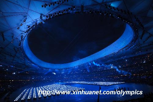8月8日,第29屆夏季奧林匹克運動會在中國國家體育場隆重開幕。這是開幕式上的擊缶表演。 新華社記者劉大偉攝