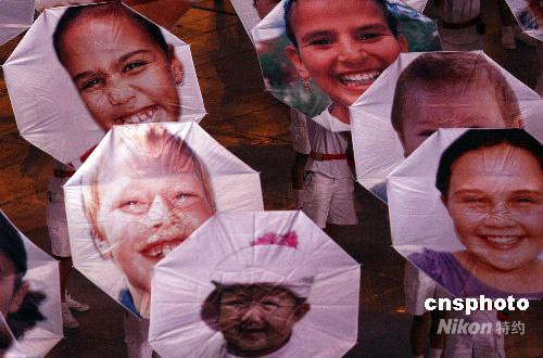 圖:奧運開幕式上2008個兒童"歡笑"迎賓朋