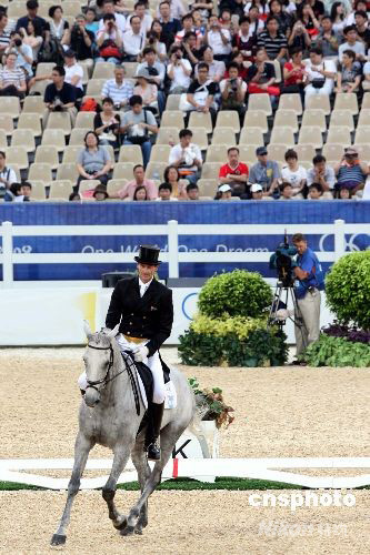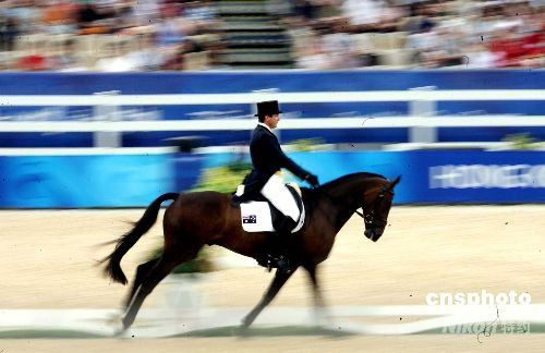 圖為首名登場的新西蘭選手圖·馬克(Todd Mark)在三項賽第一回合盛裝舞步賽中。中新社發 洪少葵 攝