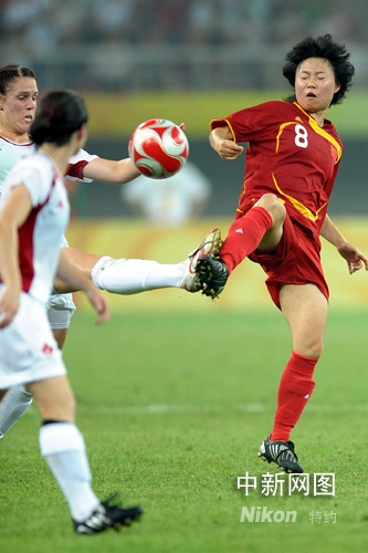 8月9日晚,中國(guó)女足在天津奧體中心水滴體育場(chǎng)與加拿大女足進(jìn)行奧運(yùn)第二場(chǎng)小組賽的較量,上半時(shí)雙方各進(jìn)一球。中新社記者 陳文 攝