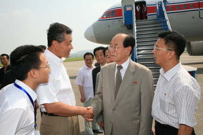 中新網(wǎng)8月10日電 中國駐朝鮮大使館網(wǎng)站消息,朝鮮最高人民會(huì)議常任委員會(huì)委員長金永南出席北京奧運(yùn)會(huì)開幕式后于9日返回平壤。中國駐朝鮮大使劉曉明前往機(jī)場迎接。前往機(jī)場迎接的還有朝鮮最高人民會(huì)議常任委員會(huì)副委員長楊亨燮、外務(wù)省副相金永日和體育指導(dǎo)委員會(huì)副委員長孫光浩等。