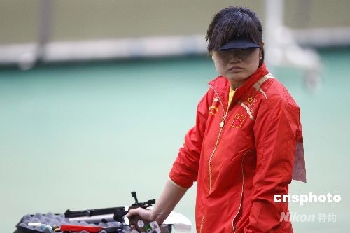 8月10日,在北京奧運會女子10米氣手槍決賽中,中國選手郭文珺奪得冠軍,并以492.3環的成績打破奧運會紀錄。這是中國軍團在本屆奧運會上獲得的第三塊金牌。圖為郭文珺在比賽中。中新社發 盛佳鵬 攝