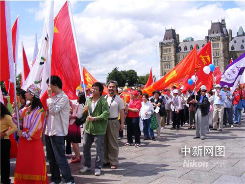 演出結(jié)束后游行開始,三組形態(tài)各異的獅子生龍活虎地在隊伍前面引路,身穿少數(shù)民族服裝的朋友高舉“同一個世界,同一個夢想!”的橫幅緊隨其后,接著是彩旗儀仗隊,幾十面奧運五環(huán)旗、北京奧運會旗及加中兩國國旗迎風(fēng)招展。人們揮動手中的加中兩國國旗,熱情歡呼:中國加油!加拿大加油!北京奧運加油!游行隊伍長達一公里,最后到達渥太華市政廳。人們跳起秧歌,打起腰鼓,形成歡樂的海洋,一曲《歌唱祖國》表達了華人對祖國的思念。活動結(jié)束時,無數(shù)彩色氣球飄向空中,帶走渥太華華人對奧運的祝福,對祖國的祝福!(完)