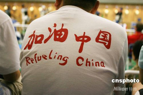 8月11日,北京奧運會男子10米氣步槍預賽舉行,眾多觀眾前往現場,為中國健兒加油。中新社發 武仲林 攝