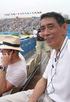 圖:詹先生透過收音機評述和現場大屏幕了解比賽規則,覺得越看越有意思。(圖片來源:大公報)