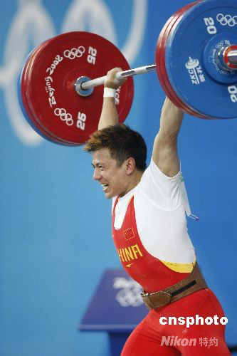 8月11日,北京奧運會開賽的第三天,男子舉重62公斤級的決賽在北京航空航天大學體育館拉開戰幕,中國選手張湘祥輕松摘得金牌。中新社發 盛佳鵬 攝