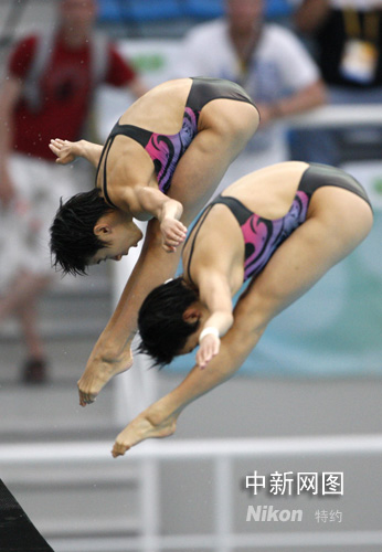 8月12日,北京奧運(yùn)會(huì)女子10米雙人跳臺決賽中,中國組合王鑫、陳若琳獲得金牌。中新社記者 杜洋 攝