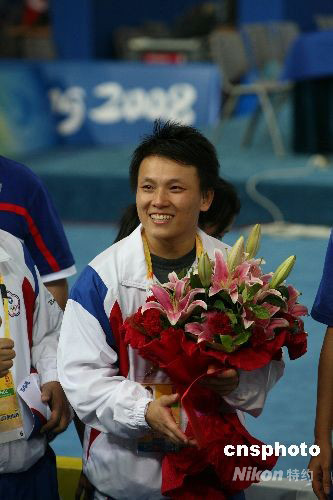 8月12日下午,女力士盧映锜為中華臺北舉重隊摘得北京奧運會第二枚銅牌。北京奧運會女子舉重六十三公斤級比賽中,她以二百三十一公斤的總成績,獲得第三名。 中新社發 沈晨 攝