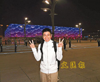 華仔在“水立方”前留影。(圖片來源:文匯報)