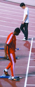 劉翔與羅伯斯在一次大賽前熟悉場地