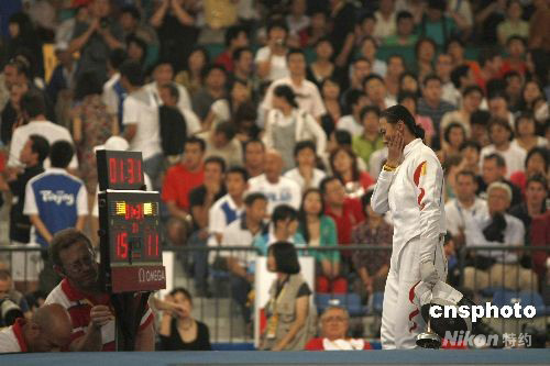 8月13日晚,在北京奧運會女子重劍個人賽銅牌爭奪戰(zhàn)中,賽會第4號種子中國選手李娜(右)在比賽中以11-15不敵第11號種子匈牙利選手伊爾迪科,獲得女子重劍個人賽的第4名。 中新社發(fā) 盛佳鵬 攝