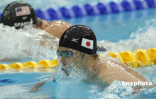 8月14日,在男子200米蛙泳決賽中,日本名將北島康介以2分07秒64的成績獲得冠軍并打破奧運會紀錄,繼100米后再次衛冕200米項目的金牌,成為蛙泳的雙冠王。 中新社發 杜洋 攝