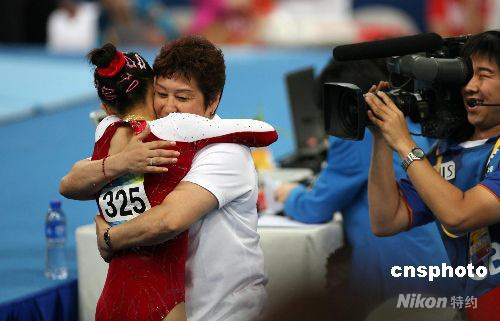 8月15日,中國選手楊伊林在北京奧運會體操女子個人全能決賽中,以62.650分獲得季軍,為中國在體操項目上增添一枚銅牌。 中新社發 武仲林 攝