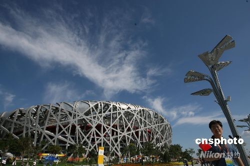 8月15日,北京一掃連日陰霾,展現(xiàn)藍(lán)天白云天氣。當(dāng)日,北京奧運會田徑比賽拉開帷幕。中新社發(fā) 武仲林 攝