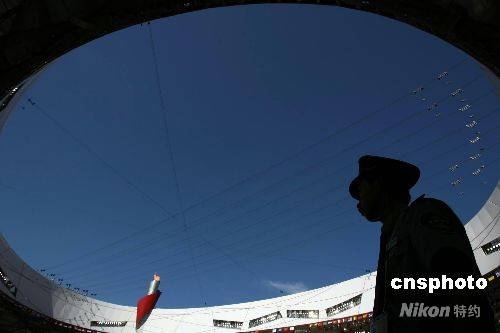 圖:奧運田徑比賽揭幕 北京展現(xiàn)藍(lán)天白云