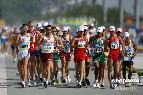 圖:男子20公里競(jìng)走在北京“鳥(niǎo)巢”舉行