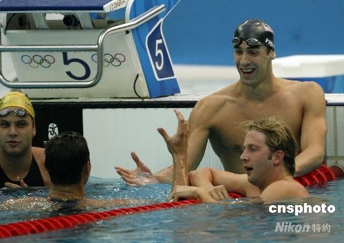 各國選手紛紛祝賀菲爾普斯創造的7金紀錄。