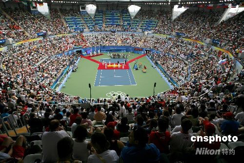 8月17日,北京奧運會網球女單、男單決賽隆重上演,中心球場座無虛席。 中新社發 武仲林 攝
