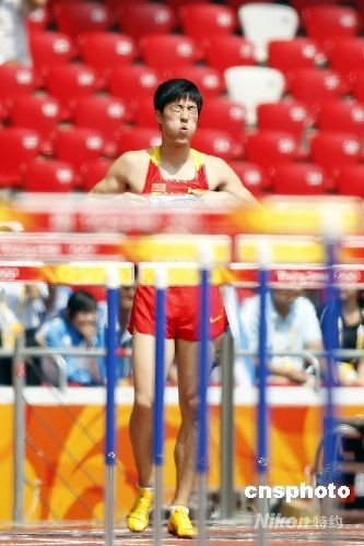 8月18日上午,在北京奧運男子110米欄第1輪第6組比賽中,中國選手劉翔因腿傷遺憾退出比賽。