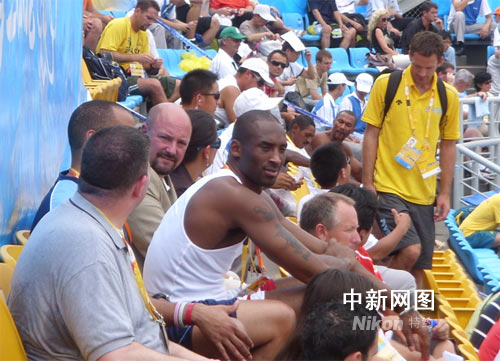 那天早上,我去VIP區(qū)協(xié)調(diào)工作,與國際排聯(lián)的兩個官員交流,并沒有想到會有什么特別的。應(yīng)他們的要求,我來到后排,與他們的上級主管溝通。這時我抬起頭,無意間看見一位身穿紅色T恤的“黑哥們”坐在眼前。我瞬時反應(yīng)過來——是NBA巨星科比!沒錯,就是他!