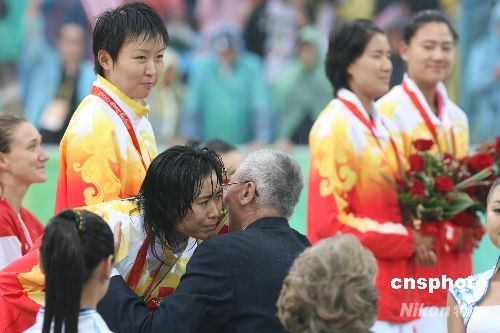 中國(guó)選手田佳、王潔在奧運(yùn)沙灘排球決賽中以0 :2負(fù)于美國(guó)選手克麗·沃爾什、米絲蒂· 梅—特雷納,獲得亞軍,另一對(duì)中國(guó)選手張希、薛晨奪得銅牌。 中新社發(fā) 武仲林 攝