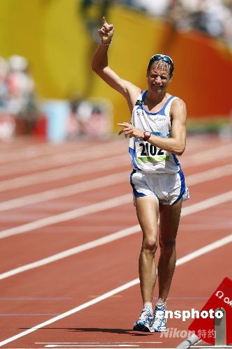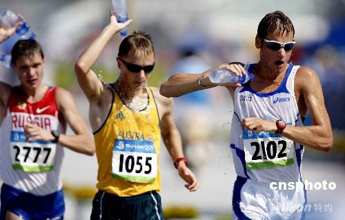 8月22日,北京奧運會田徑比賽第八日,在男子50公里競走比賽中,意大利選手亞歷克斯-施瓦策以3小時37分09秒奪得冠軍。 中新社發 盛佳鵬 攝