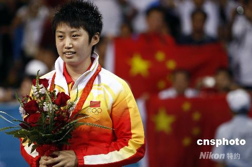 8月22日晚,在北京大學體育館進行的乒乓球女子單打銅牌爭奪戰中,中國選手郭躍以4-2戰勝新加坡選手李佳薇,為中國乒乓球代表隊贏得一枚銅牌。 中新社發 盛佳鵬 攝