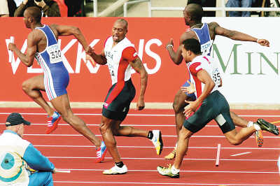 事件回放:美國隊憋足勁要在4×100米項目上好好作為。21日晚進行的預(yù)賽中,美國隊分在A組,四棒選手分別是羅德尼馬丁、帕德格特、帕頓和蓋伊。美國隊頭三棒發(fā)揮正常,但在帕頓準備交棒給第四棒蓋伊?xí)r意外失手,棒子很不客氣地掉在了地上。繼百米預(yù)賽意外“出局”之后,蓋伊又犯了一次“低級錯誤”,也使得美國隊決賽欲與牙買加隊一爭高低的希望就此泡湯。更令美國人郁悶的是,一小時之后,美國女隊“復(fù)制”了男隊的錯誤,同樣因交接棒失誤與決賽無緣。