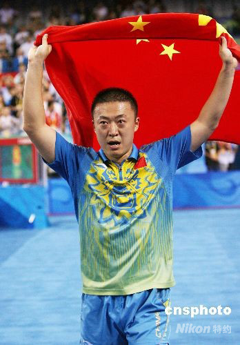 8月23日晚,馬琳在北京奧運(yùn)會(huì)乒乓球男子單打決賽中以4:1戰(zhàn)勝隊(duì)友王皓,奪得冠軍。為中國奧運(yùn)軍團(tuán)贏得第49枚金牌。至此,中國選手包攬北京奧運(yùn)會(huì)乒乓球男子單打前三名。此前,另一名中國乒乓球名將王勵(lì)勤在季軍爭(zhēng)奪戰(zhàn)中擊敗42歲的瑞典老將佩爾森,獲得銅牌。 中新社發(fā) 武仲林 攝