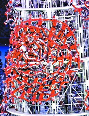 陳維亞說,2006年11月11日,閉幕式團隊剛剛成立,最初的創意中就有這么一個“塔”,這是從苗族的踩刀梯表演中獲得的靈感。最早的設想是用搭梯子方式進行,由于存在安全隱患而放棄。最后,主創人員找到了現在的形式,就是由人去攀登“記憶之塔”。396人徒手攀登,更加直觀地體現了拼搏精神。