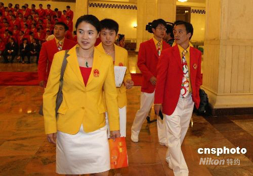 8月26日,2008年北京奧運會中國體育代表團總結(jié)大會在北京人民大會堂金色大廳舉行。王楠、郭躍參加北京奧運會中國體育代表團總結(jié)大會。中新社發(fā) 廖文靜 攝