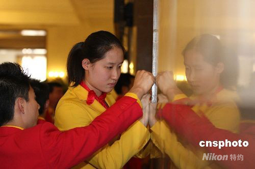 8月26日,2008年北京奧運(yùn)會(huì)中國體育代表團(tuán)總結(jié)大會(huì)在北京人民大會(huì)堂金色大廳舉行。圖為同參加總結(jié)大會(huì)的劉子歌為李小鵬簽名留念。中新社發(fā) 廖文靜 攝