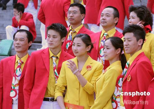 8月26日,2008年北京奧運(yùn)會(huì)中國(guó)體育代表團(tuán)總結(jié)大會(huì)在北京人民大會(huì)堂金色大廳舉行。中國(guó)蹦床運(yùn)動(dòng)員參加北京奧運(yùn)會(huì)中國(guó)體育代表團(tuán)總結(jié)大會(huì)。 中新社發(fā) 廖文靜 攝
