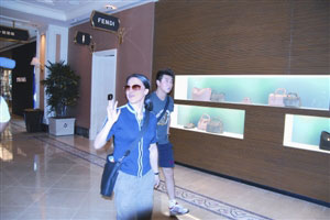 在永利轉悠一圈后,王皓、王楠鎖定專賣手袋的某名店,在店內逗留約20分鐘后,王楠首先有“斬獲”。記者欲走近問王楠有何收獲,王楠即提著“戰利品”、戴著墨鏡急步離開,往其它名店“搏殺”。王皓則在名店內不斷挑選合適手袋,更全程打手提電話,不知是否打給女朋友問款式。