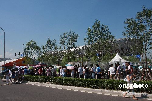 圖:北京市民排長(zhǎng)隊(duì)一睹“鳥(niǎo)巢”風(fēng)采