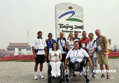 圖:羅馬尼亞殘奧運(yùn)動(dòng)員天安門廣場(chǎng)合影