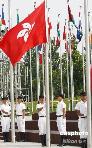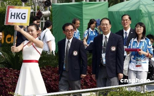 9月4日,香港代表團(tuán)在北京殘奧村舉行升旗儀式。中新社發(fā) 盛佳鵬 攝