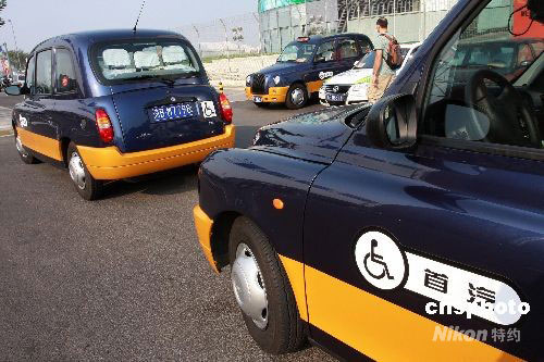 9月5日,北京一批無障礙出租車“蹲守”在殘奧村附件服務殘奧盛會,成為北京一景吸引市民觀看。近日,首汽和北汽公司的70輛無障礙出租車組隊投入殘奧會的服務中,這些出租車司機均經過相關培訓,幫助殘疾乘客時,都將先詢問對方意見。這70輛無障礙出租車都是新購置的,包括“倫敦出租車”等4種車型。70輛出租車均配備了雙班司機,這些車輛分批駐守殘奧村等地,保障殘奧大家庭成員的出行。中新社發 鄭雄增 攝